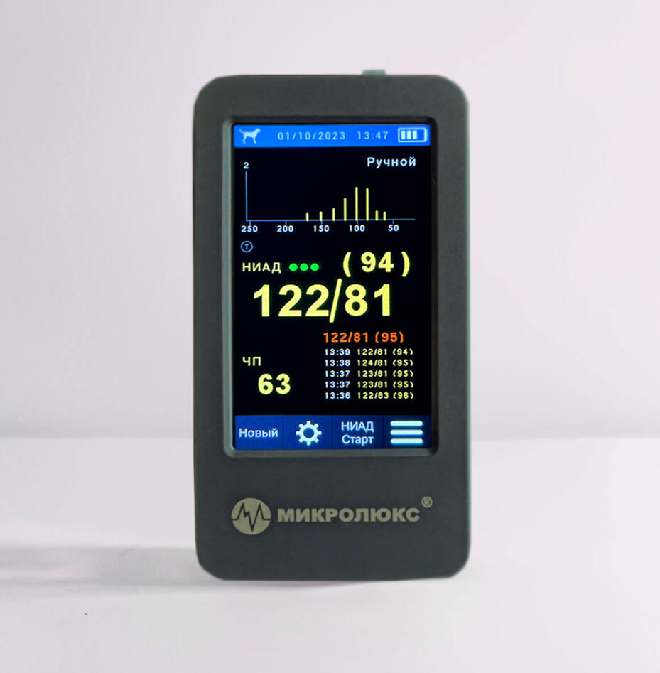 Тонометр Ветеринарный МЛ-430 VET «Микролюкс» – новая флагманская модель тонометра для измерения артериального давления у животных от компании «Микролюкс».Тонометр позволяет точно измерить неинвазивное артериальное давление и частоту пульса как у бодрствующих животных, так и у животных в операционной во время анестезии.Высокая чувствительность позволяет измерять давление у животных любого размера и веса, от маленьких котят и шиншилл до крупных собак.